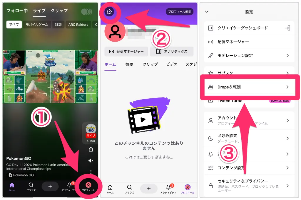 - Twitchの「Drop&報酬」のインベントリ画面で「今すぐ入手」で Drops を受け取る