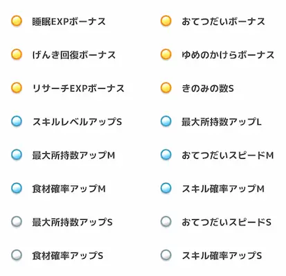 - 得意なもの「オール」で「きのみ・食材・スキル」を全て備えている